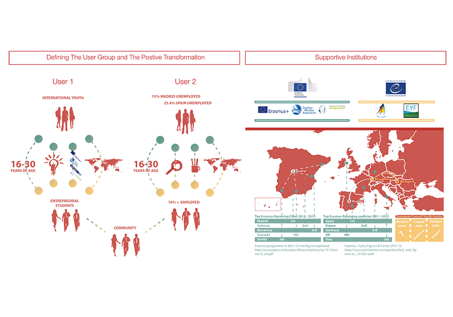 ‘The Upward Spiral: European Youth Entrepreneurship Centre’ responds to the socio-economic needs and activity of its context. Within its envelope it maintains a flexible nature, towards its context it becomes a positive icon, providing for its local community and attracting economic development and investment at a global scale for Spanish youth. Thus overcoming the challenges and leveraging benefits for the promotion of active citizenship through entrepreneurial youth initiatives.