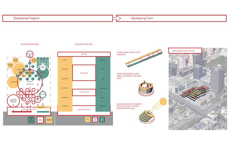 The Urban composition between phenomena, need and form defined at multiple scales provides the opportunity for innovative approach towards the architectural relationship between program, economy and the human experience. Through the architecture the opportunities are utilized and the challenges leveraged for the development of the buildings relevant character and identity.